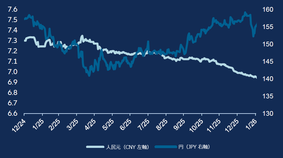 2026年のマクロ経済の見通しは、より狭い範囲に収まると予想しています。私たちの基本シナリオは、全体的に金融環境が緩和的な「リフレーション型」のマクロ環境であり、これはキャリー戦略に追い風となります。また、足元では人民元が加速的に上昇し始めている点にも注目しています。