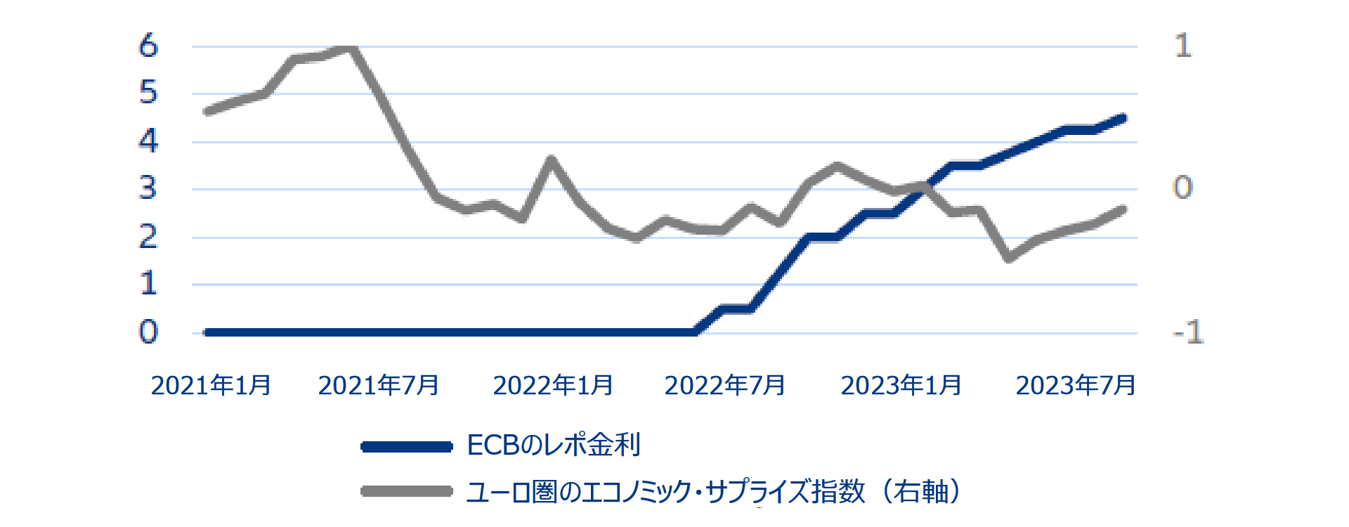 戦略の相違が最も顕著なのは、おそらく米国とユーロ圏でしょう。欧州中央銀行(ECB)よりも積極的な引き締め策を講じてきたFRBは、今夏に引き締めペースを緩めましたが、同国経済は年明けには低迷からの持ち直しの兆候を示していました。一方ECBは、根強いコア・インフレ率の上昇を前に、引き締めサイクルをより長く保っています。FRBは経済が目標インフレ率に向かってゆっくり調整することを望んでいるようですが、一方のECBはインフレの持続するリスクを避けるために調整を加速させたいと考えているようです。