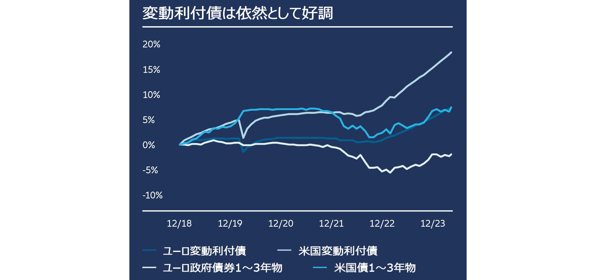 2024年の逆イールドカーブ及びより緩やかな利下げサイクルの中で、弊社は引き続き、よりデュレーションが短く、質の高い証券のメリットを取り込む可能性がある、変動利付債(FRN)に配分する根拠を見出しています。FRNは、ほとんどが金融機関やその他の企業が発行する投資適格債であり、利札は短期金利参照ベンチマーク(担保付翌日物調達金利インデックスなど)を利用して定期的(四半期毎など)にリセットされ、支払われます。