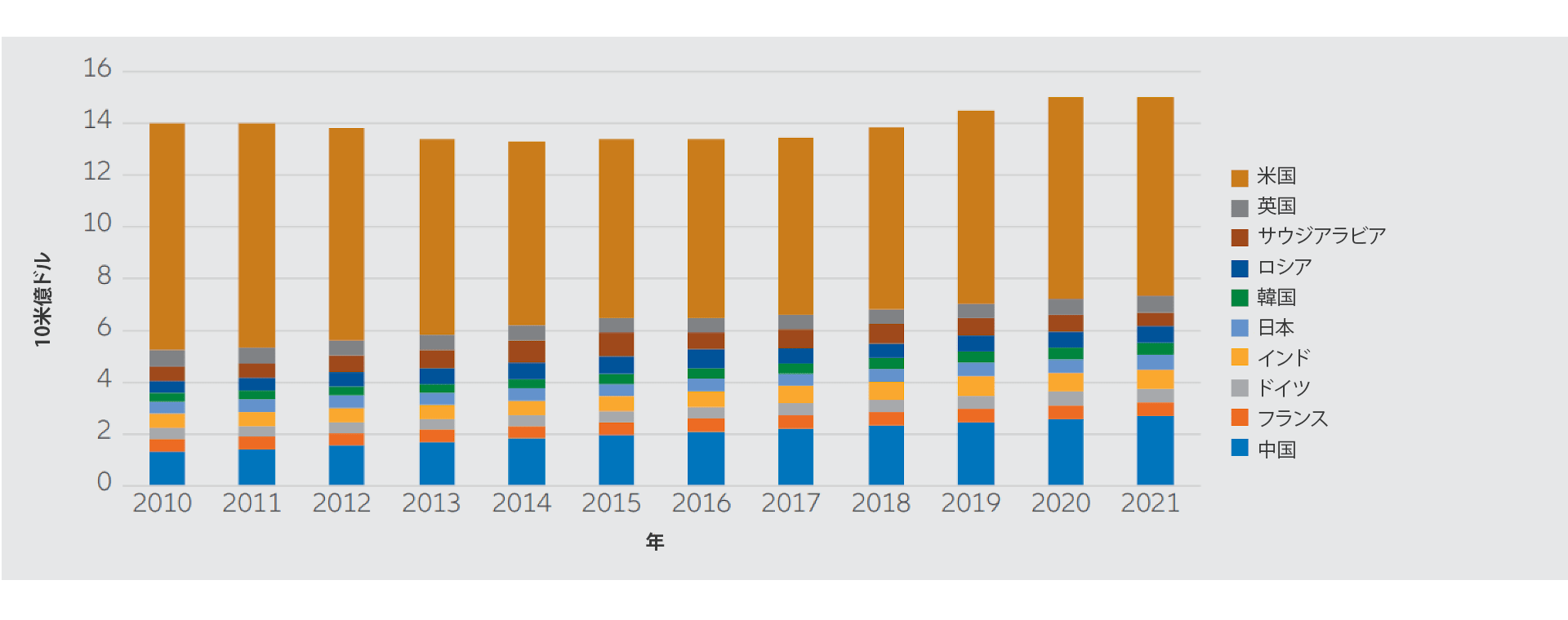 図表4:防衛費上位10カ国から、重点の変化がうかがえる