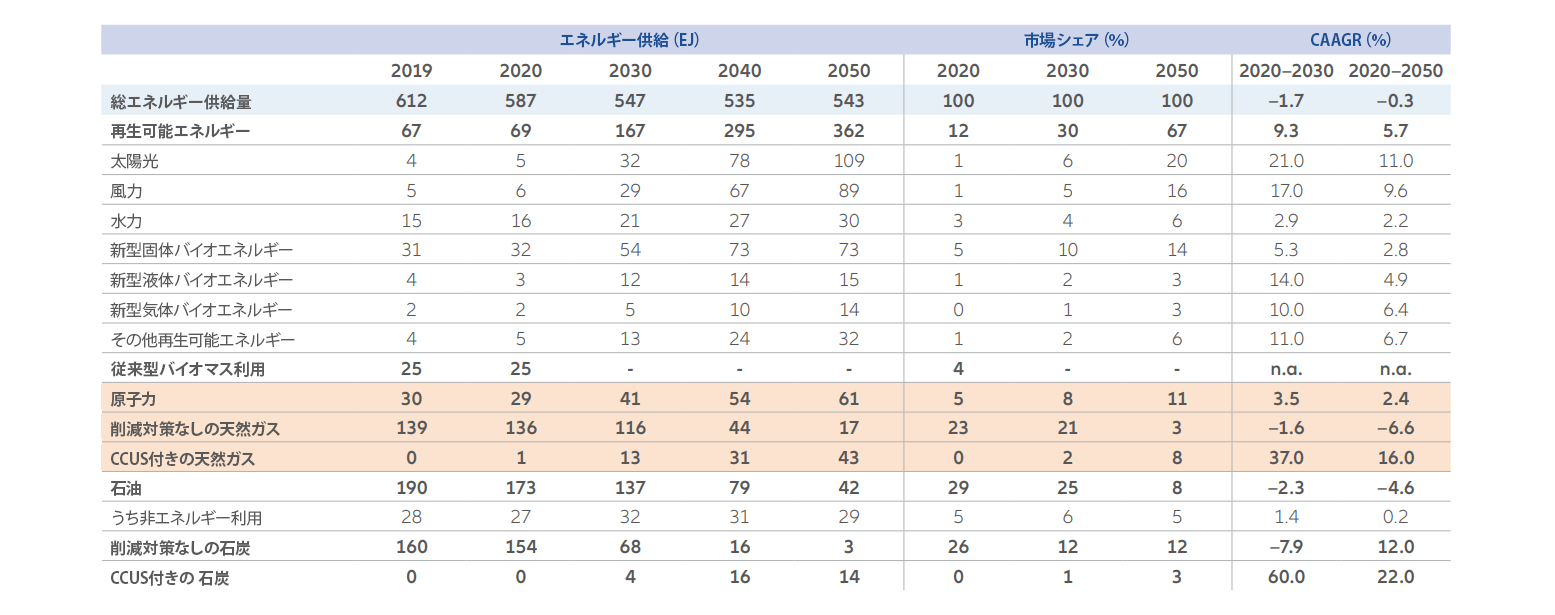 図表1-2050年までに世界の原子力利用は拡大、天然ガスの利用は縮小の見込み