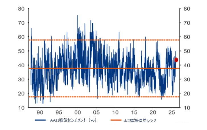 もっとも、楽観度とエクスポージャーが数週間前より高まっている以上、市場が調整に対して脆弱になりつつあるのも事実です。それでも、制御不能な陶酔感はほとんど見られず、直近の政治的ストレステストは、市場が打撃を吸収できるだけの耐性を維持していることを示しました。高い期待と継続的な地政学的不確実性が存在する環境下では、投資家は規律ある分散投資を維持することが賢明と言えるでしょう。