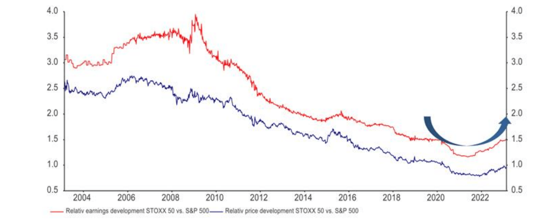さらに、欧州連合(EU)は、さまざまな危機の影響を和らげるために、欧州グリーンディールの枠組みの中で大規模な支出を計画しています。要するに、貿易と投資の回復、金利上昇、米ドル安、グリーン転換、国の助成プログラム、そしてグローバルなサプライチェーンの確保を目的とした主要な産業セクターの欧州への移転といった数々の要因が欧州株の魅力を高めているのです。