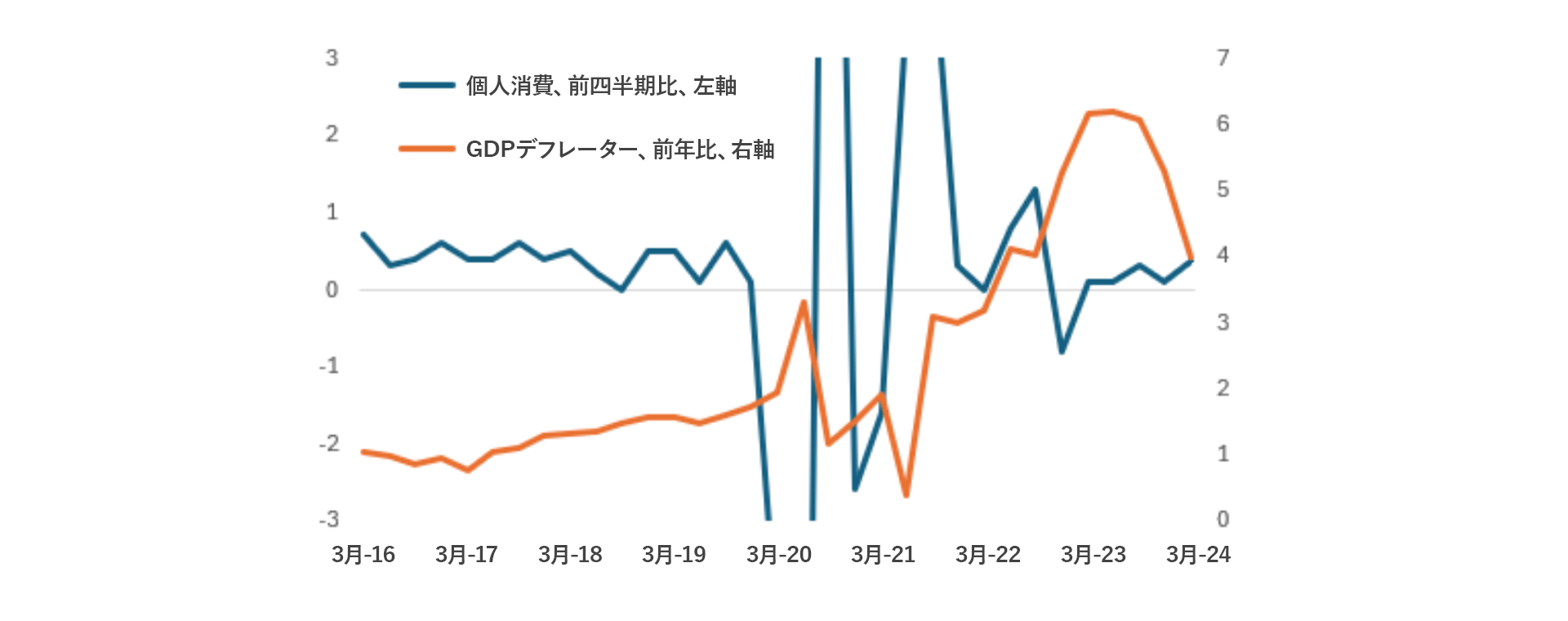 フランスとスペインの統計に基づいて推定したユーロ圏の個人消費指標とGDPデフレーターの直近のデータ