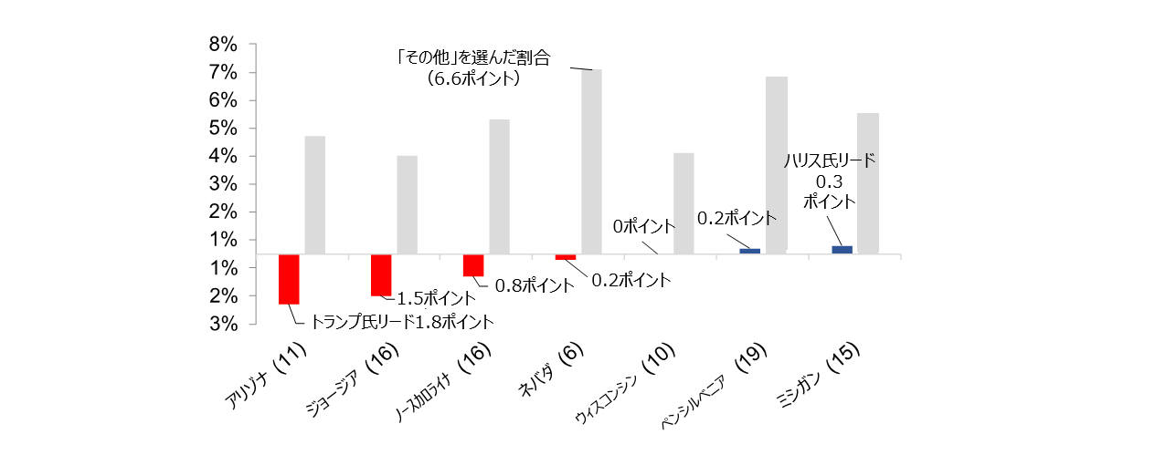 選挙当日は、どうなるでしょうか。世論調査は僅差の接戦となっていることを示しており、選挙結果が数日、場合によっては数週間出ないこともありえます。しかし、世論調査の結果を詳しく見てみると、大半は統計的な「誤差の範囲」内であり、ひょっとすると一方の圧勝となる可能性もあります(「今週のチャート」を参照)。世界の投資家、そして米国の多くの有権者にとって、選挙結果が迅速に判明することが最良の結果になるかもしれません。