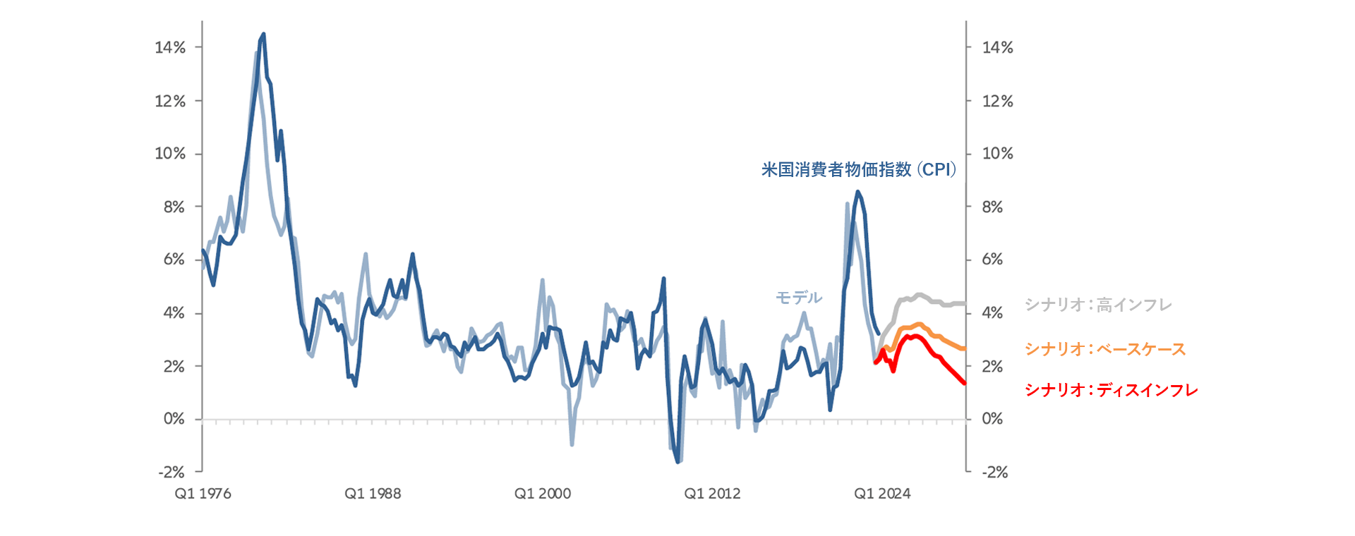 米消費者物価指数(CPI、前年比):実績値、モデルおよびシナリオ予測値
